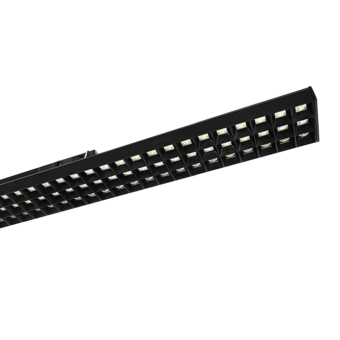 Integratech LINEAR TRACK advanced est un éclairage linéaire sur rail avec driver intégré dans le rail. Son design ultrafin sans driver apparent offre une combinaison parfaite entre le rail et le luminaire. Compatible avec les rails triphasés Global, Eutrac, Staff, Ivela, Unipro, Stucchi et Erco. Le luminaire mesure 1,2m de long et offre un angle de rayonnement de 60°. Le luminaire est équipé d'une grille qui lui permet d'atteindre l'UG19, un CCT de 3000K et d'un commutateur d'alimentation 35/40/45/50W. Modèle en noir (RAL9017) avec commande DALI.