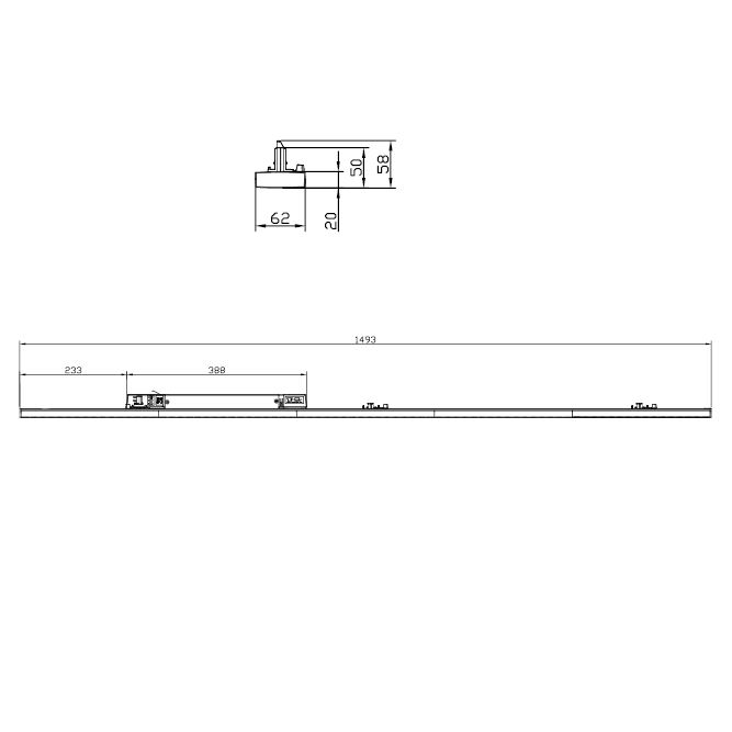 LinearTrack PER 1,5m 60W 4000K 60° U19 blanc
