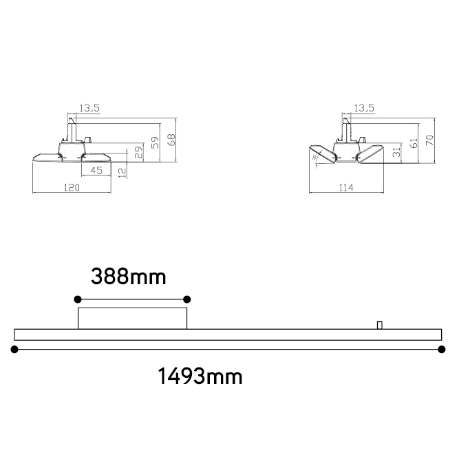 LinearTrack PER 1,5m 60W 4K 30x90° 2xincli blanc